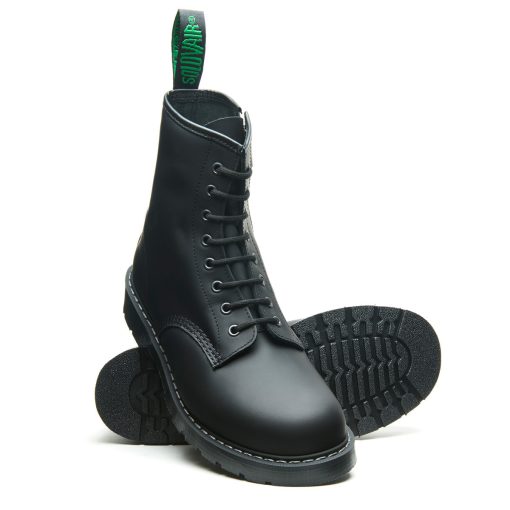Solovair Men’s Black Greasy 8 Eye Zip Derby Boot