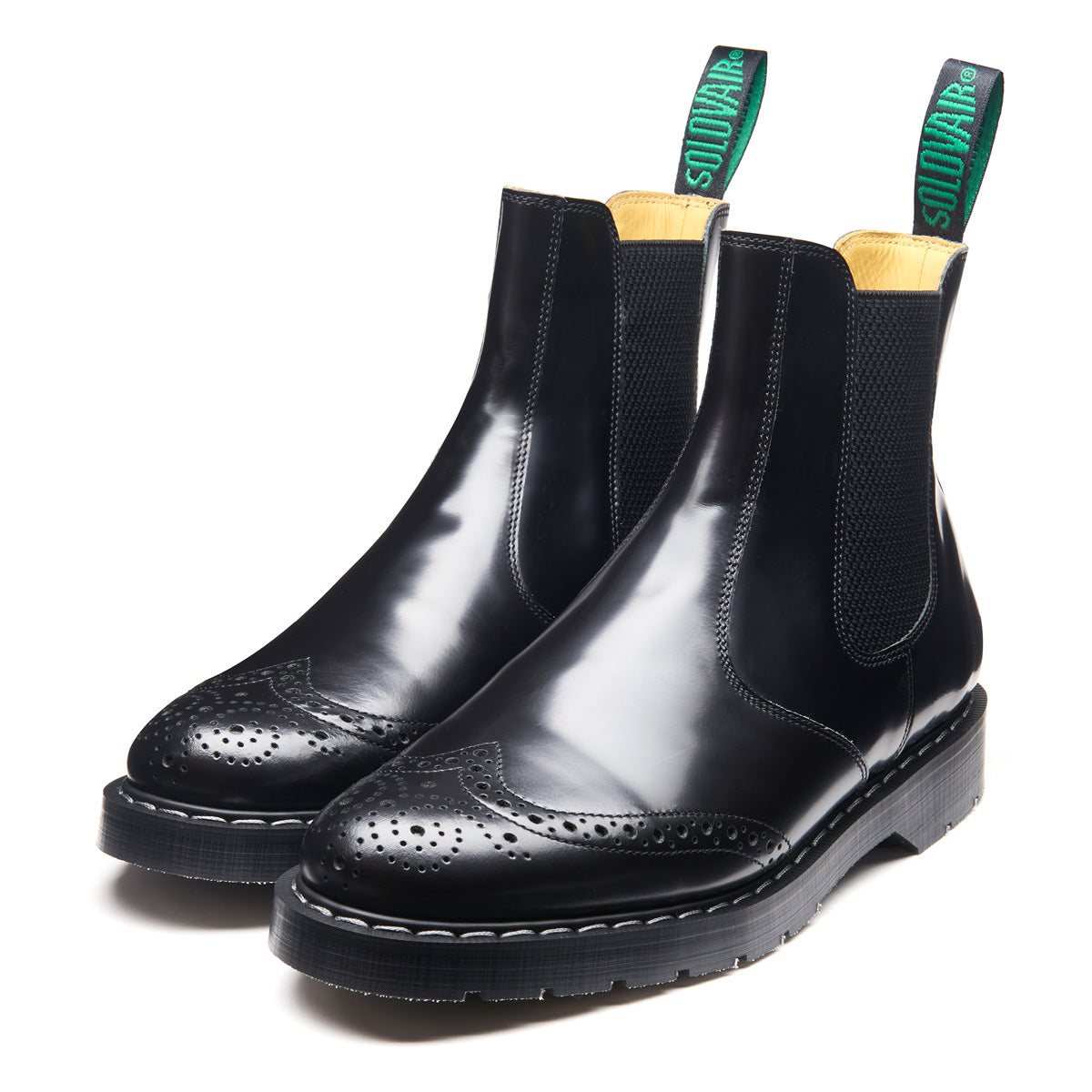 Solovair Men’s Black Hi-shine Dealer Brogue Boot
