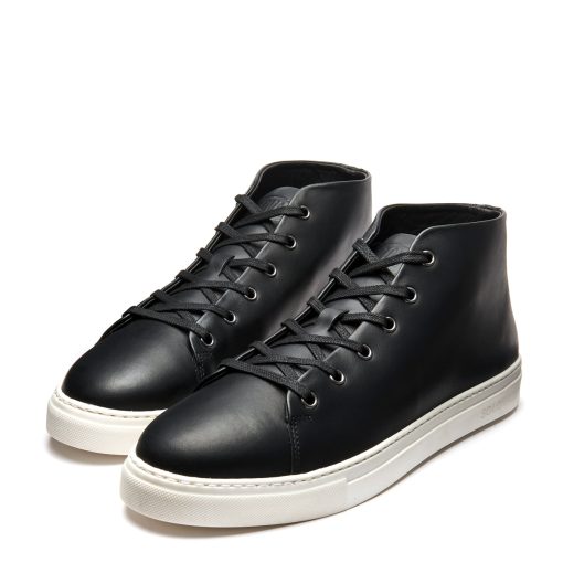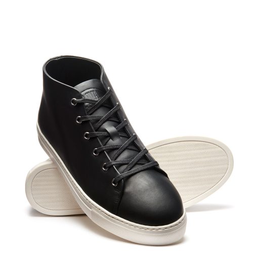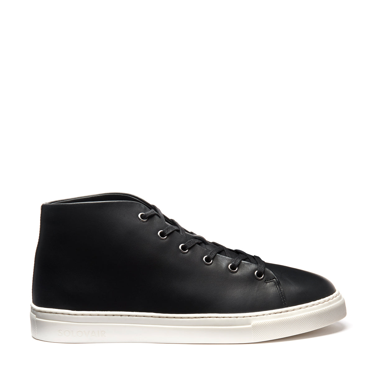 Solovair Men’s Shoes Black Calf High Top Sneaker (white Sole)