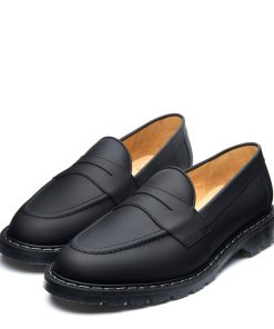 Solovair Men’s Shoes Black Greasy Penny Loafer