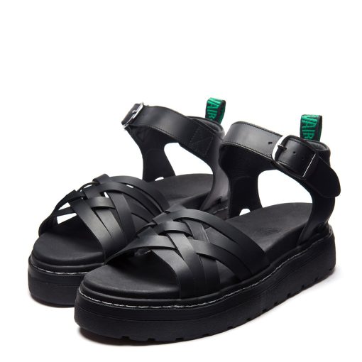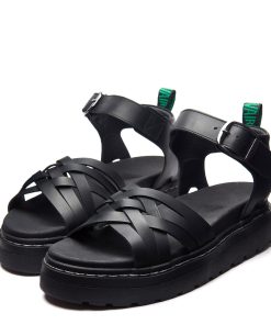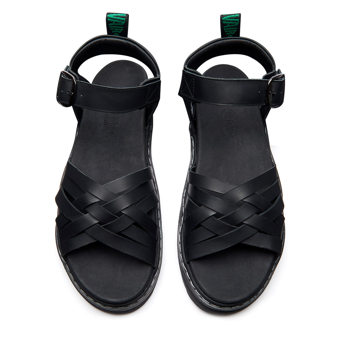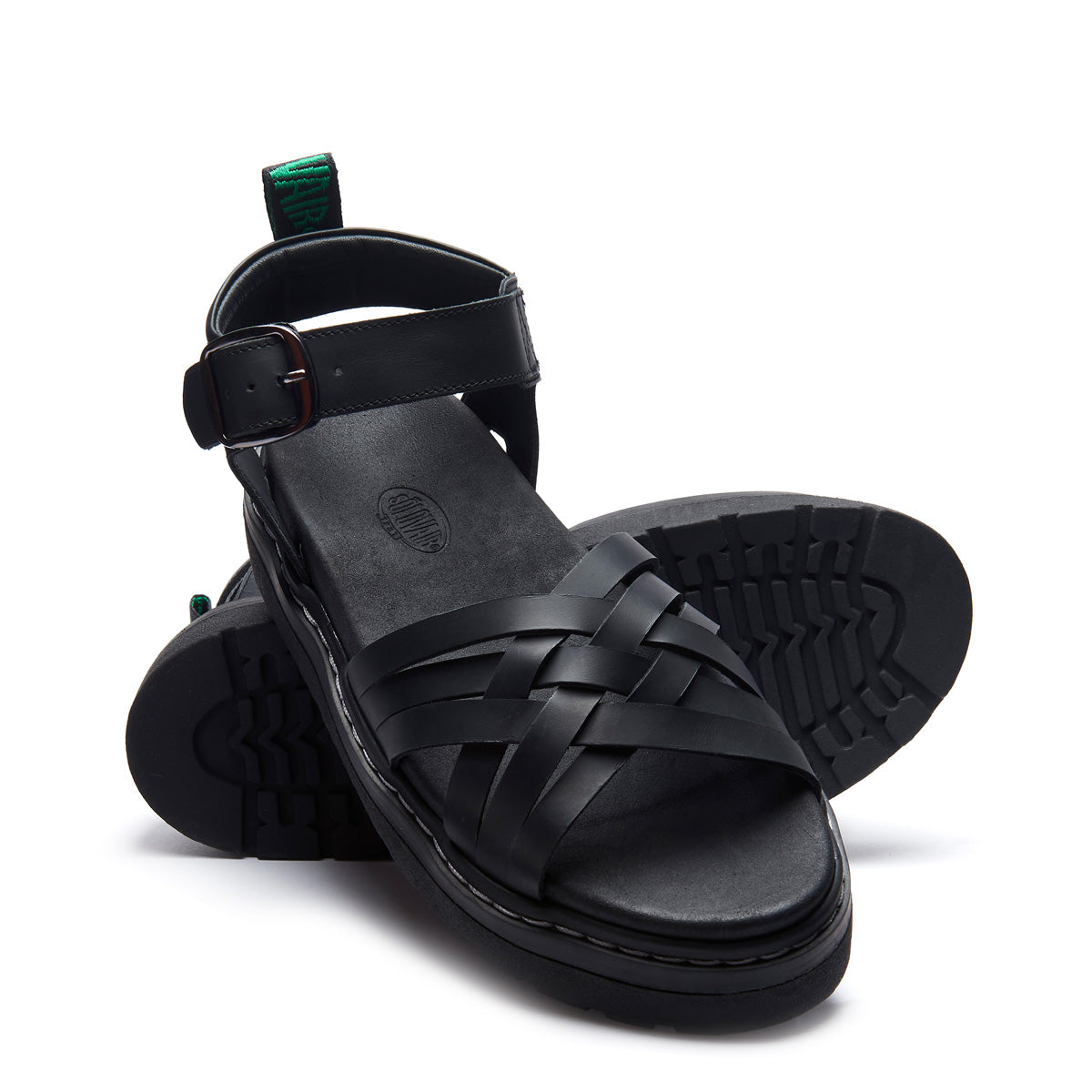 Solovair Men’s Shoes Eydon – Black Greasy One Strap Crossover Sandal